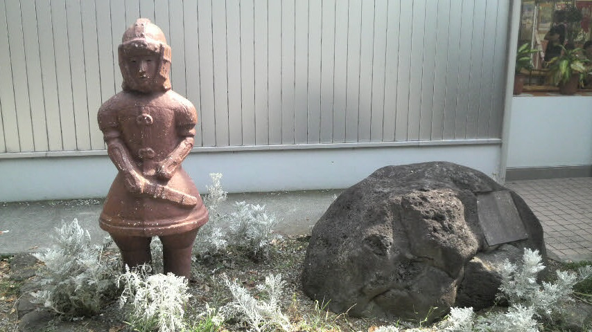 横の石碑的なものに説明が書いてあったんですけども、この埴輪は群馬県の何とかっていうトコで出土したのを模したものです、と。