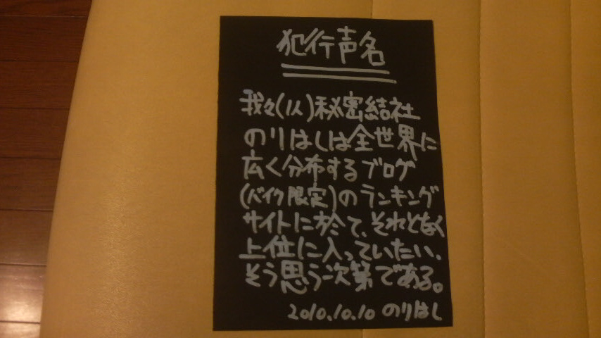 買って帰って苦労して梱包しつつですね、テロ行為を行うからには犯行声明が必要なんじゃないかと思って一筆したためた。