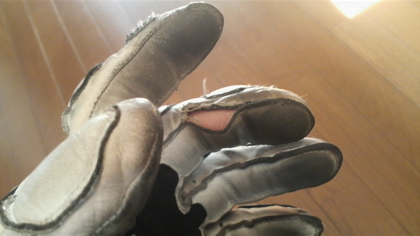 洗濯物を干してる時に、昨日の帰りにグローブの左中指がパックリしてるのを発見したコトを思い出す。