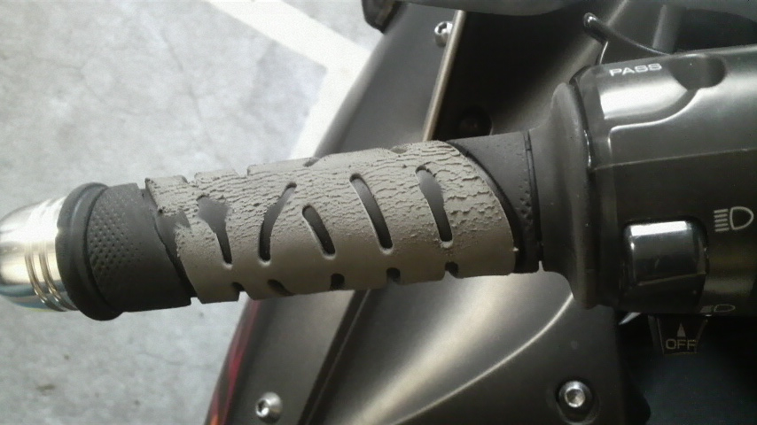 グリップは5月頃交換したのですが…既に左側は磨り減ってプチプチが無くなって来てます…5000km使ったのでこんなモンかな…。