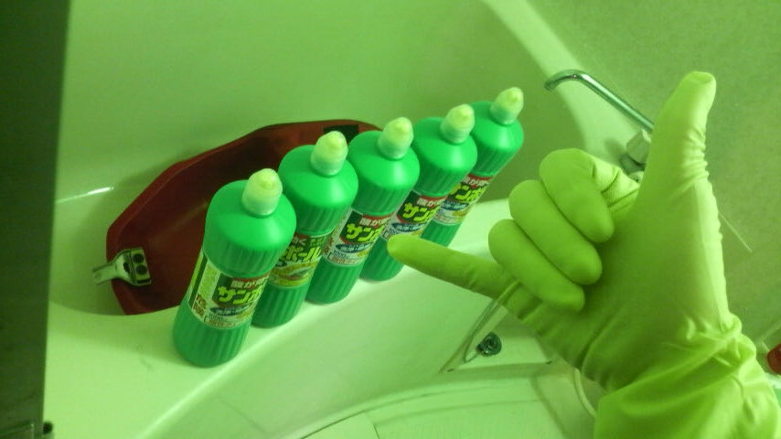 そんでタンクの中からはガスの匂いはまったくしなくなって、泡も出なくなったので、貧乏人の味方ロヂャースで買って来たサンポールを投入。