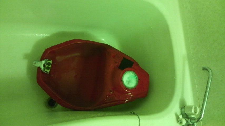 そういった意味も含めまして、マジックリン1本と水で満タンにしてたタンクのサビ取り作業を微妙に放置し過ぎた挙げ句に、今日やっと続きを再開しました。