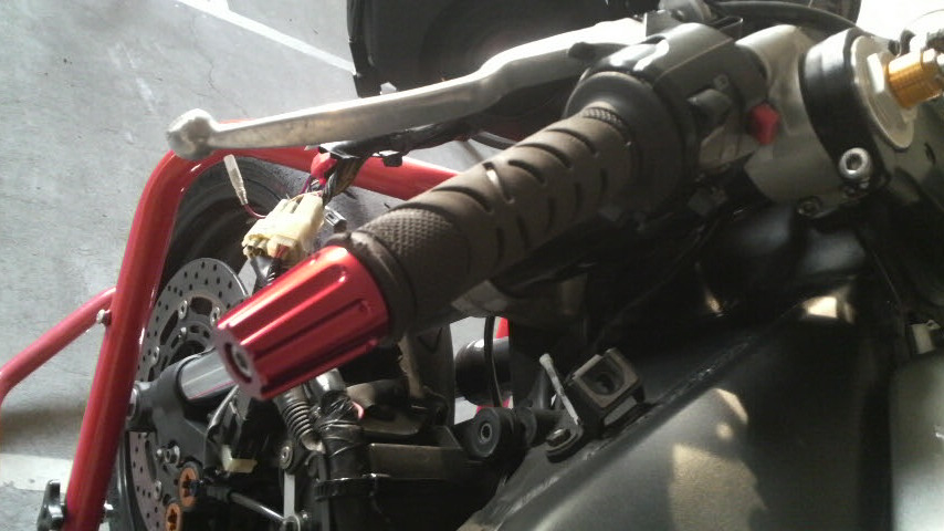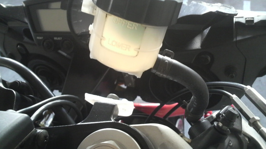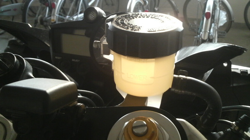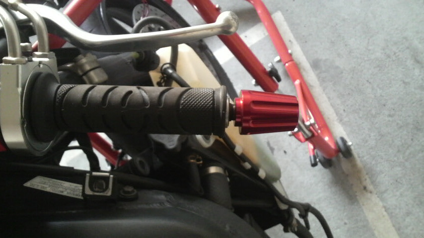そんで今日はそれ以外のフロントブレーキのリザーバー交換と、バーエンドの取り付けだけやっとくコトにする。