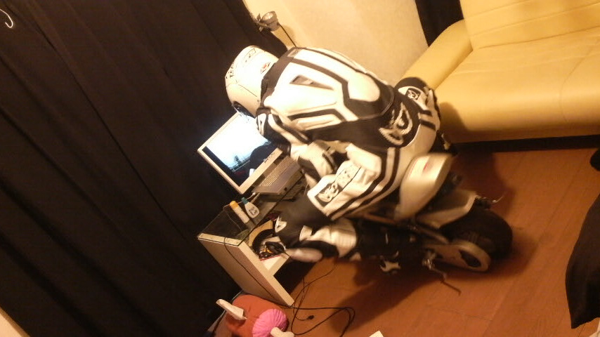 新調したツナギとブーツ、ヘルメットとグローブまでフル装備でチャイナポケバイに跨がり、youtubeで茂原東コースとかトミンAコースなんかを走ってる走行動画をフルスクリーンで見つつ、脳内サーキット走行会!