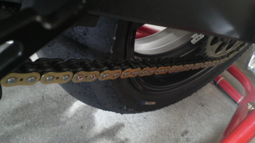 そうこうしているうちに、年末に茂原を走ってからチェーンの整備をしてなかったコトに気付いて様子を見てみると、そこまで酷くもないけどリアを持ち上げて手で回してみると3ヶ月ろくに走らせてないだけに転がりが重いのとホコリが染み込んだような汚れが気になる。