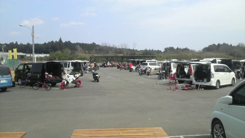 午後枠を予約しといたので、家を10時くらいに出てのんびりと高速を走って、途中守谷で長めの休憩を取ってトミンに着いたのが12時前。走行券を買って事務所を出てみると、改めて凄い台数だなコレ、と(笑)