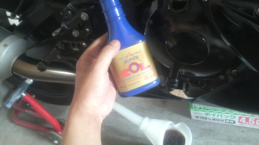 オイルをペール缶で買ってリッター当たりの単価が下がったので毎回ZOILを250ml投入してますけども、コスト的には今までMotulの300Vを交換してたのと同じくらいでYamalubeの4RSとZOIL250mlが投入出来る。