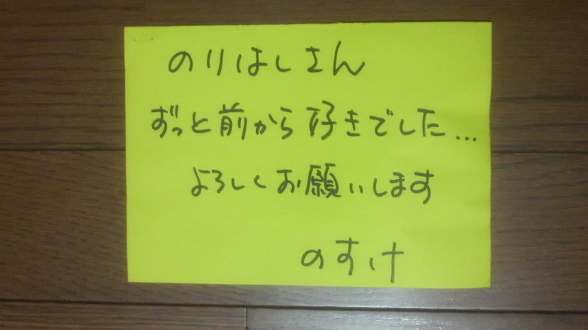 で、忙しい合間を縫ってのすけさんがTシャツを送ってくれた訳ですけども、支払い方法は袋の中に入ってるってコトだったので、袋の中をガサゴソとまさぐってみると、宣言通り黄色い紙が出て来ましたよ!
