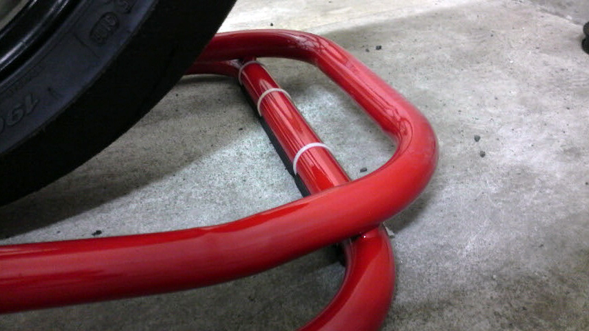 スゲぇ音がしたり下地が出たりっていうのが嫌ならスタンドをそーっと手で降ろして…っつぅか持ち上げてっつぅか、とにかくそーっと掛けてやれば良いっていう訳なんですけども、面倒臭がりな自分としてはやっぱりあの足で踏んづけて『ママチャリのスタンドより楽なんじゃね!?』っていう便利さを優先したいもんだ。