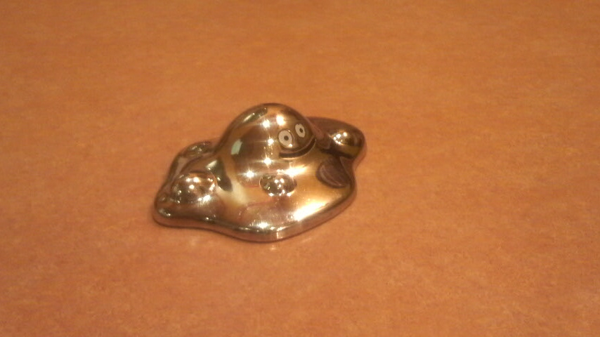このはぐれメタルは、トモ松さんが日本を一周した時の相棒。今回ももちろん一緒に来ていて、トモ松さんのポッケに潜んでいたところ、何やらファミレスの店内を揺るがす程の大爆笑を繰り返す7人に驚いて顔を出したところを激写された。