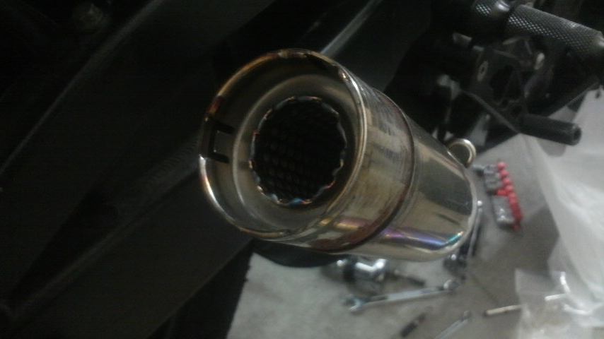 モリワキのは元からかなり静かな部類なので、早朝とか深夜じゃなければマンション暮らしでもそこまでナーバスになるような音量ではないんですよ。なので音量をどうこうってのは考えたコトなかったんですけども、このスリップオンの軽さでノーマルの性能のマフラーが欲しいなぁ…と。