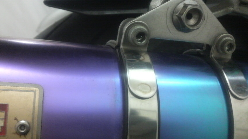 なのにサイレンサーは数ミリ後ろにずれるので、サイレンサーバンドを緩めて少しずらす。