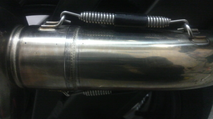 あのインナーバッフルは今までのバッフルとちょっと違う感じで、エキパイとサイレンサーの間に挟み込むように取り付けるんですけども、エキパイの中で更にパンチングパイプとグラスウールで径を絞るって訳で。