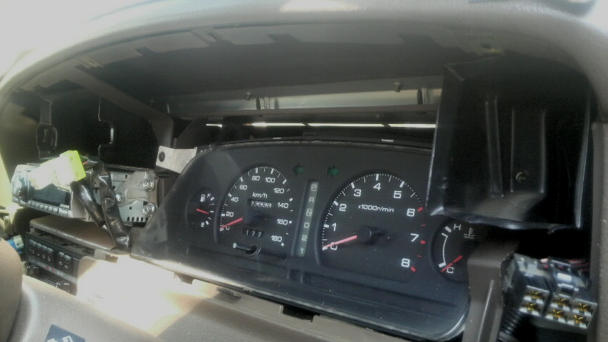 そんでメーター回りのパネルの内側を通ってまた微妙な隙間から出て来てダッシュボードにセンサーを貼っ付ける。