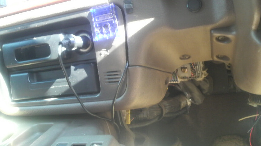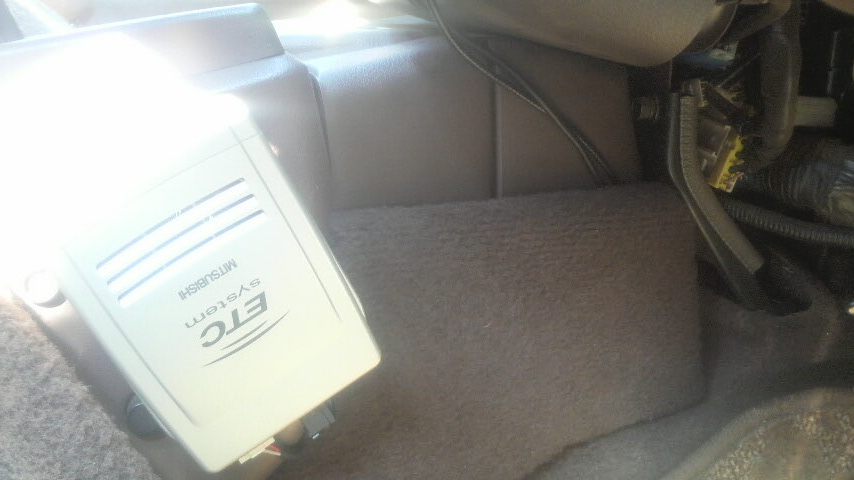 そんで本体(カード突っ込むトコ)は運転席の足元の邪魔にならないトコに両面テープで貼っ付けた。