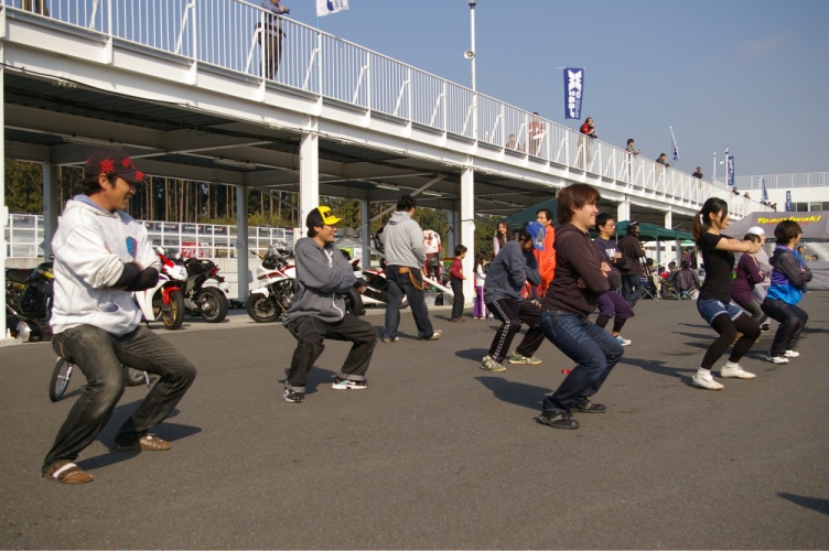 総合格闘家の久保田武蔵さんという人がゲストでやって来て、レースで怪我をしないようにって言って体操をしたんですけども、これが滅法キツい(笑)