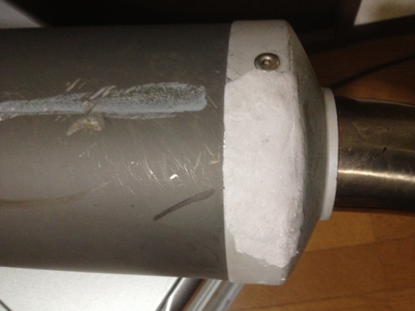 ほんのちょっと排気漏れしているので、これではさすがに通してもらえんだろうな…ってコトでパテで適当に塞いどいた。
