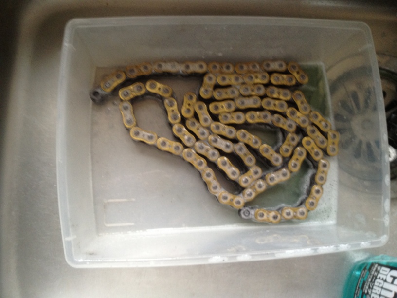 で、チェーンのコマを詰めるというコトは、チェーンがフリーになるというコトで、そういう機会もそうそうなかろうなぁ…と思ってですね、いつもとちょっと違うメンテ的なコトをしようと思ったんですよ。