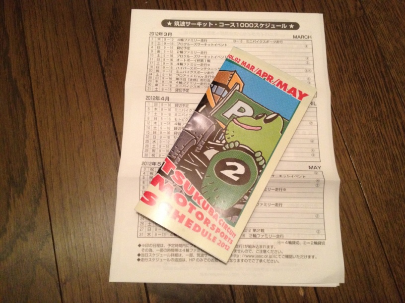 何かと思って開けてみたら、3月から5月の走行日程とか、レース観戦の優待の案内とかが入ってた。