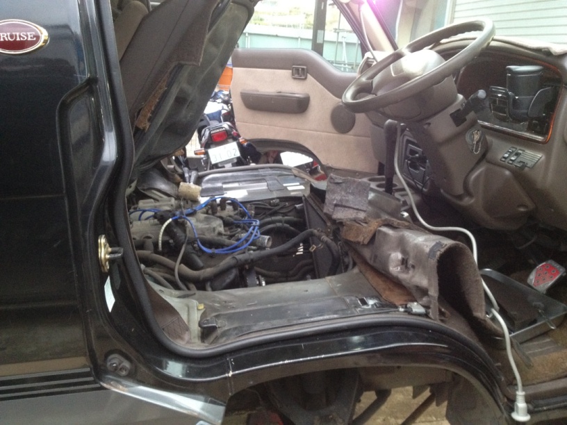 キャラBURNのエンジンは運転席と助手席の下にあって、つまり運転席の中で作業をしないといけない。