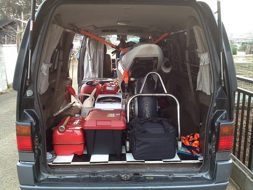で、2台積み前提で作ってあるキャラBURNはGSX-R600が1台だと広々ビローン。