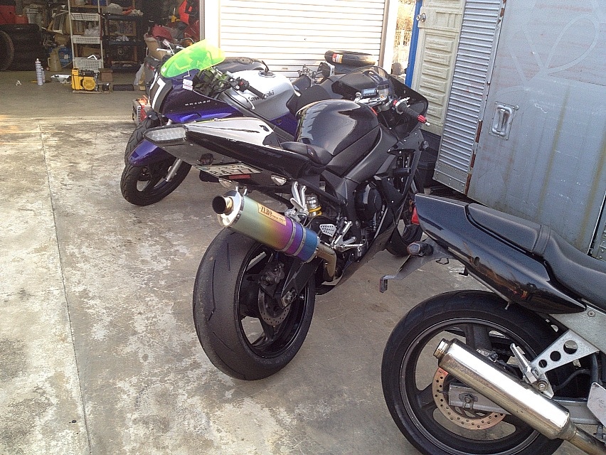 スペアホイールやら何やらを積むのにいろいろ厳しかったので、監督のガレージに愛しのR1とR1用の前後スタンドやらダボくん用のチョックやら何やら預かってもらうコトにしたんですけども、数週間とはいえR1が手元から離れるってのはとんでもなく寂しい。