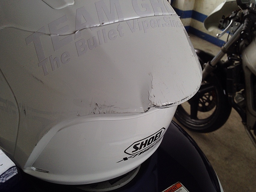 1番ショックなのは、1本背負いを喰らった時に頭から落下してしまったのでヘルメットがアレな感じっつか…