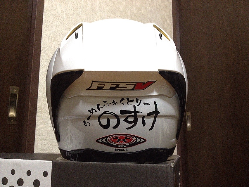 いつもヘルメットには必ずTEAM GHOSTのステッカーを貼るんですけども、このヘルメットはもうサーキットのレースの時しかかぶらないので、のすけさんトコのステッカーのみってコトで。