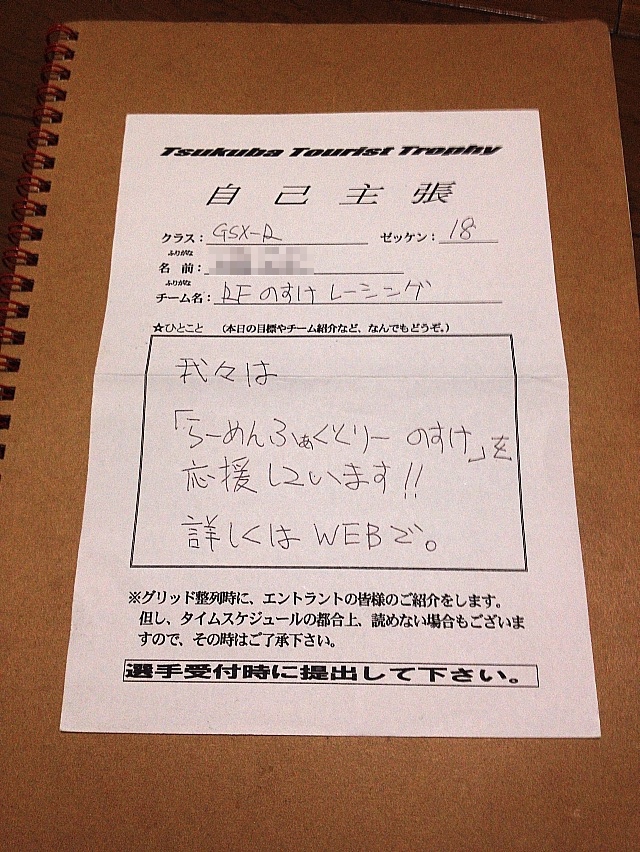 明日17日に走るレースは一応MFJの何かアレなので、装備の検査ってのが厳しいんだそうですよ。