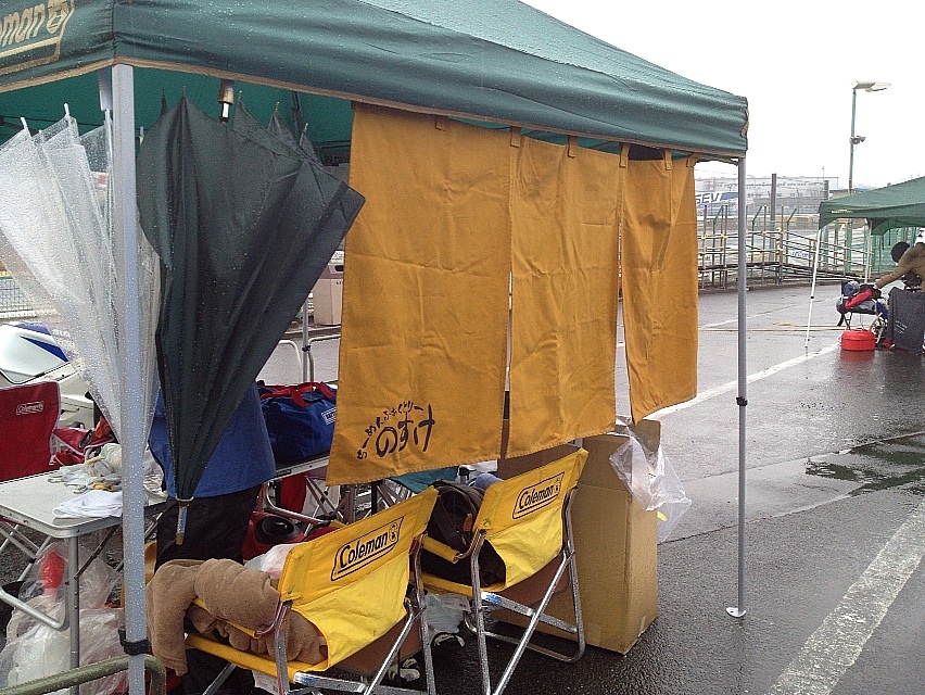 僕の自己主張の紙に書いた『我々は、らーめんふぁくとりー のすけを応援しています。詳しくはWEBで』というのをMCの人が読んで、『チーム名のRFはレーシングファクトリーじゃないのか!』みたいなコトと、『詳しくはWEBで』ってのを連呼してくれたらしい。