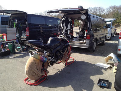 VFR400R(NC30)でたまにミニサーキット走行。C24セレナ(トランポ)と時々カメラのお話し。