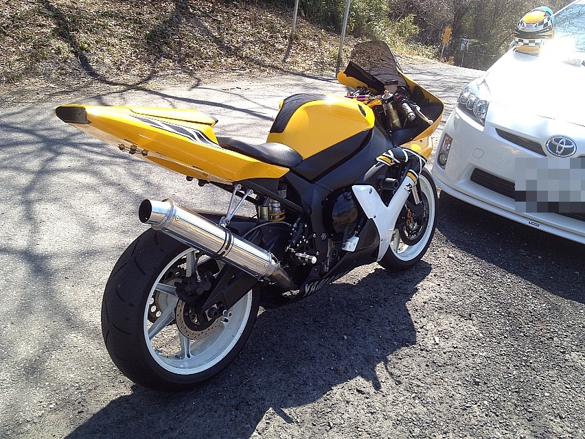 あの黄色いR1を見て、僕のは茂原で大クラッシュした時にノーマルのシートカウルが粉々になってしまったタイミングでちょうどヤフオクで激安出品されてたクレバーウルフのシングルシートカウルになってますけども、やっぱり5PWのテールはノーマルにシートカバーを着けた方がエッヂが立っててカッコ良いな、と改めて思ったりなんだり。