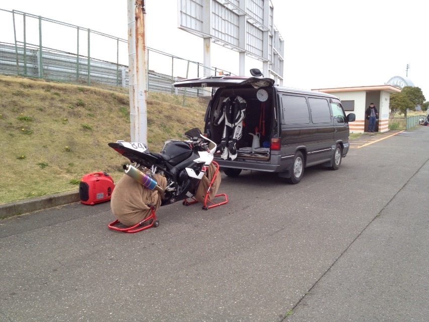 何とか10分弱ウォーマーを掛けて、1周2周様子を見てすぐ全開で行けるくらいになってギリギリセーフだコンニャロウめっ!と、今度こそコースイン処に向かいます。